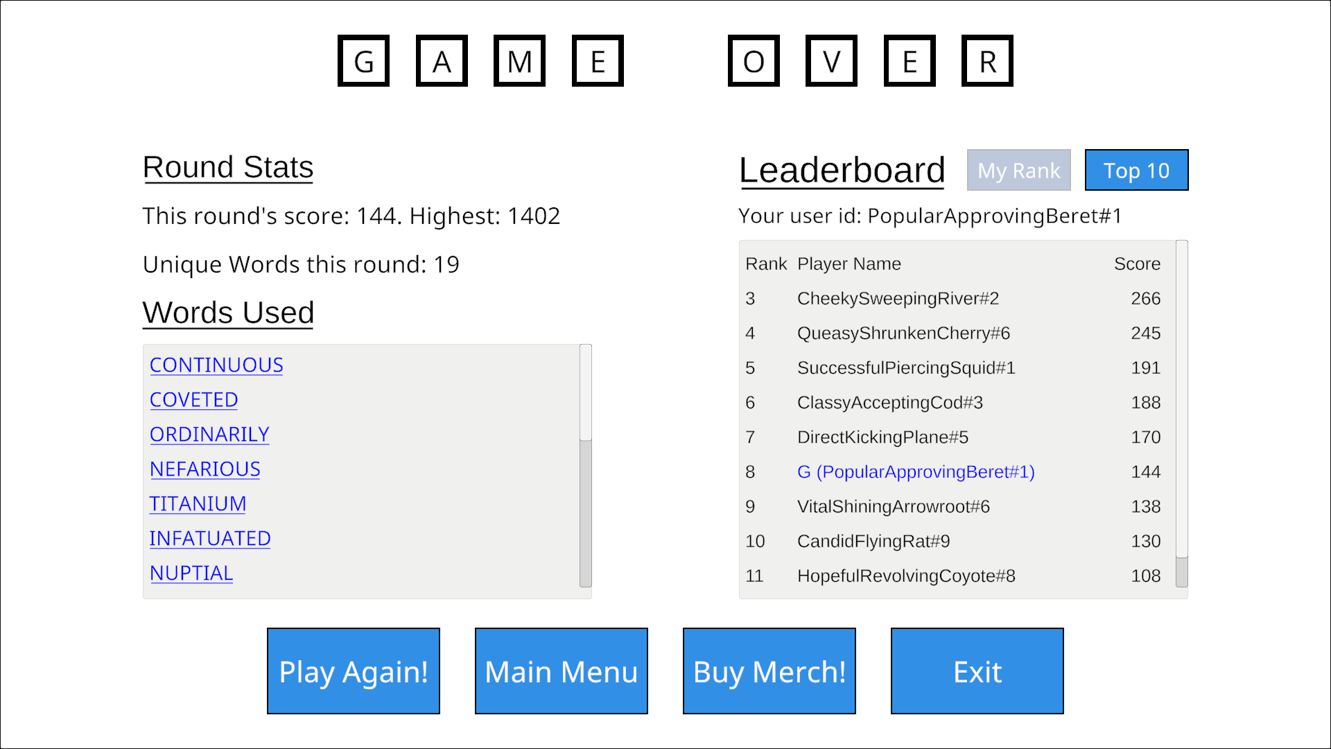 | Tags | 2D, Fast-Paced, No AI, Roguelite, Singleplayer, Unity, User Interface (UI), Word game, Wordle |